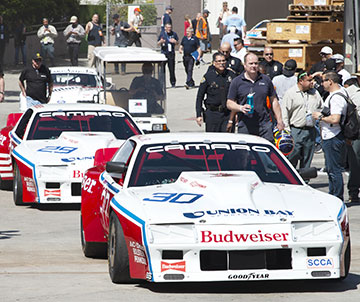 The DeAtley Motorsports Camaros head for the track.