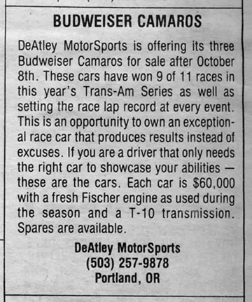 The DeAtley/Budweiser Camaro Afterlife